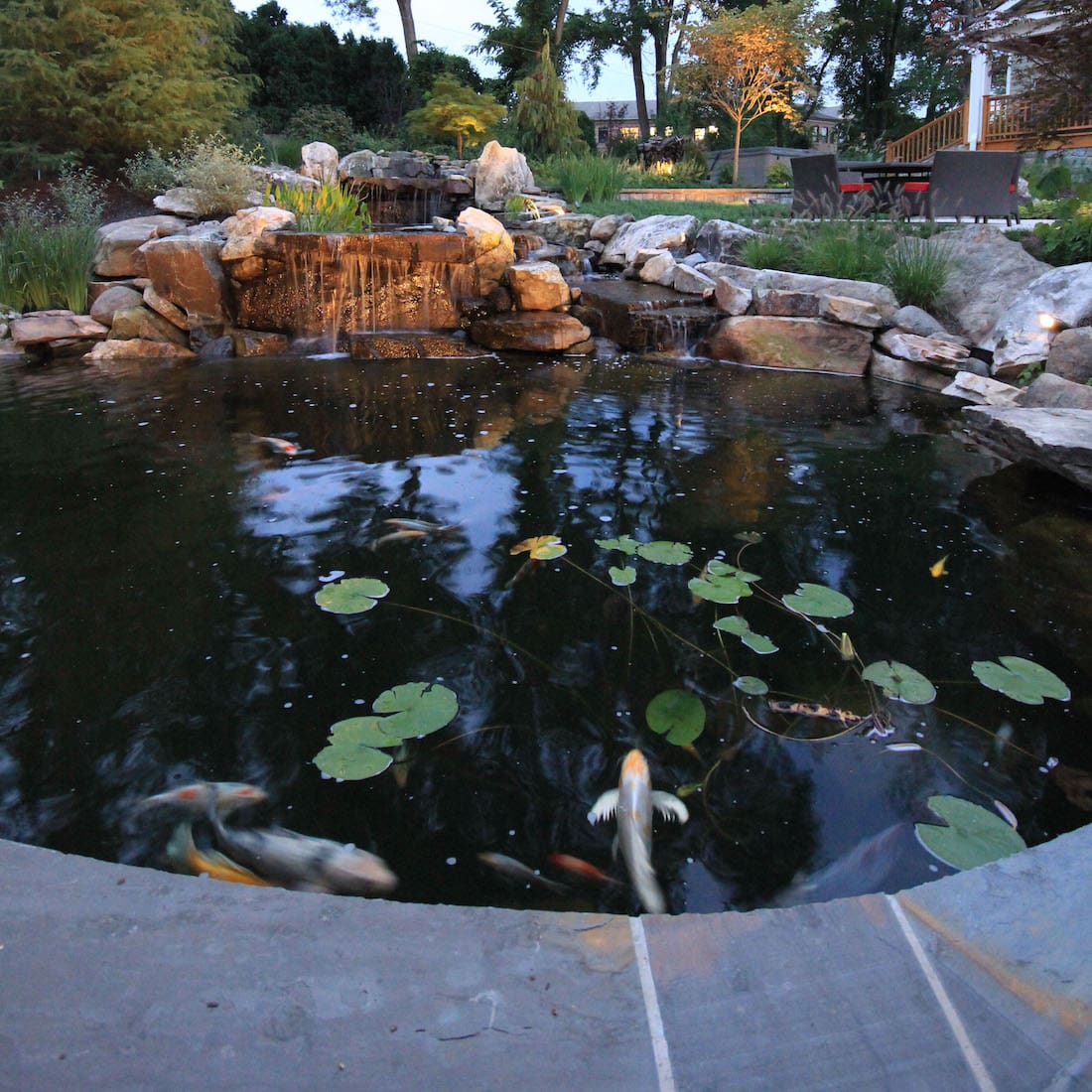 “Peaceful.” “Relaxing.” “A private retreat. ” This is how some of our clients describe their koi pond experiences. The murmur of a waterfall, the stillness of the pond and the liquid movement of fish make a certain kind of magic for them.