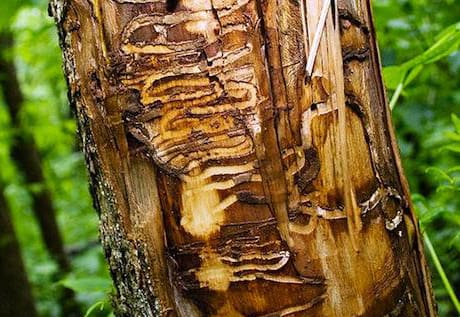 Borers are very bad. There are many different types that specialize in attacking particular types of trees. The adult is a winged beetle that bores a hole in the bark of the tree and lays its eggs. When they hatch, the larvae end up killing the tree by eating the cambian layer. That is the living layer right under the bark that sends nutrients and water up and down the trunk of the tree.